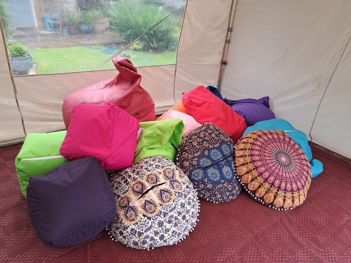 Pair our beanbags hire service with an outdoor tent and heaters for a super cosy night with friends and family.