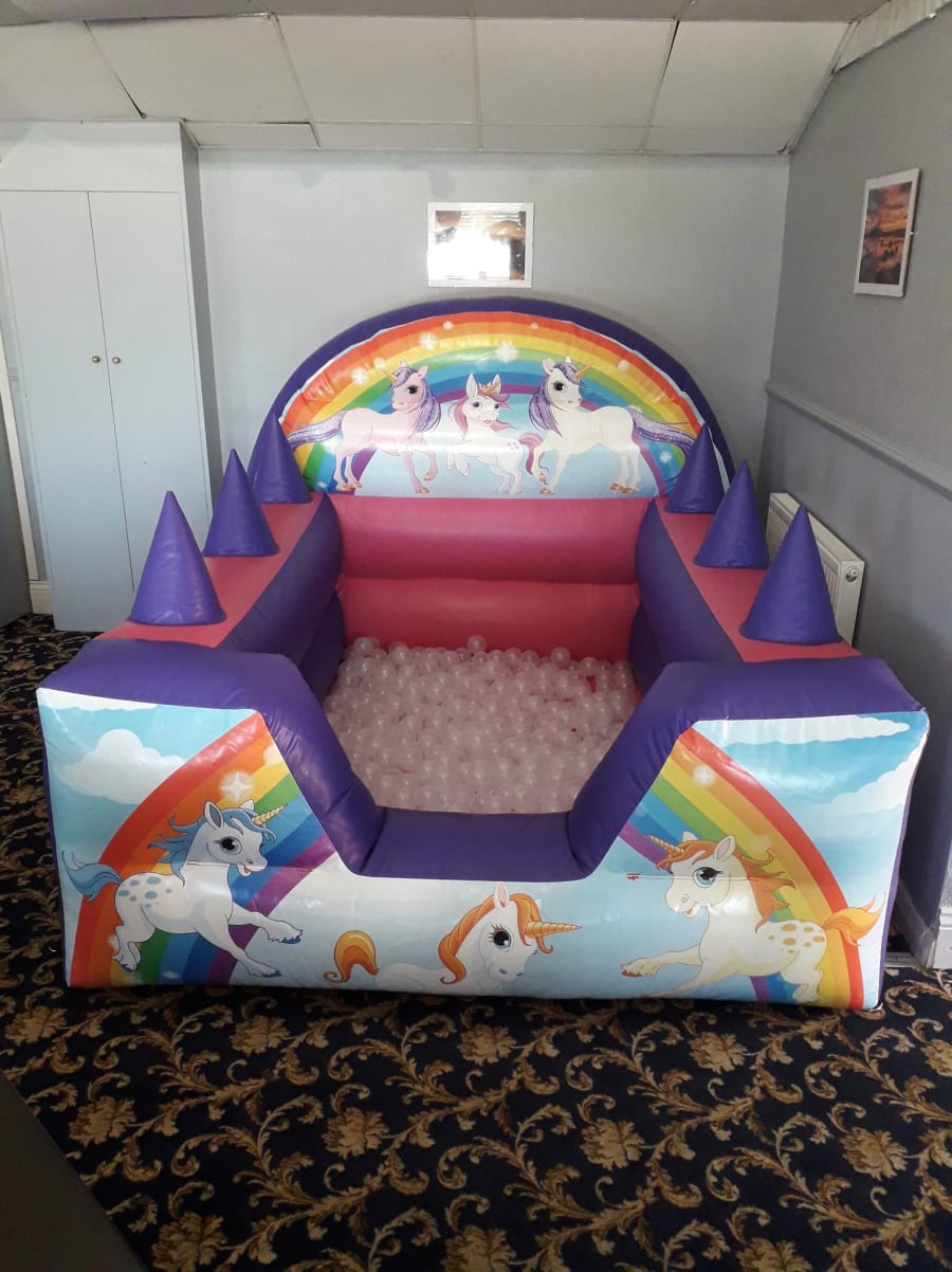 Looking to add a touch of enchantment to your next party or event? Look no further than our 7 ft. Inflatable Unicorn Ball Pool with Air Jugglers! Available for hire in County Durham, Sunderland, Newcastle, Darlington, Middlesbrough, Cleveland, Teesside, Northumberland, North East and Tyne and Wear? This magical ball pool is sure to captivate the imaginations of children and adults alike.