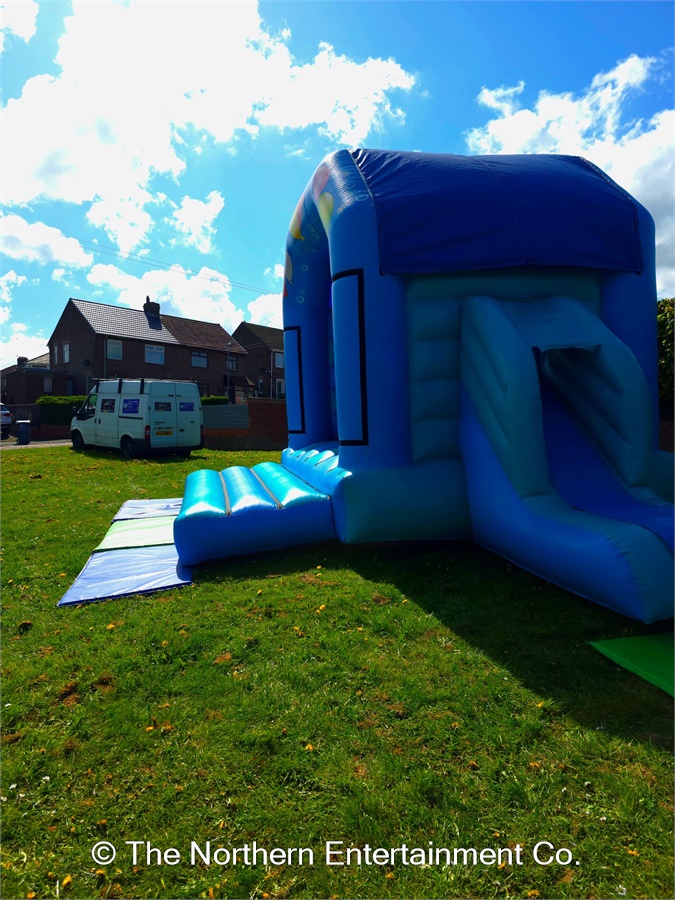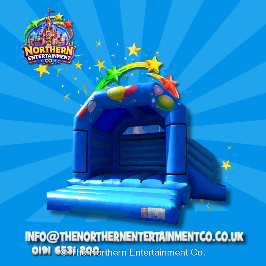 Make your party unforgettable with our Blue Bouncy Castle & Slide Combi 💙🎉