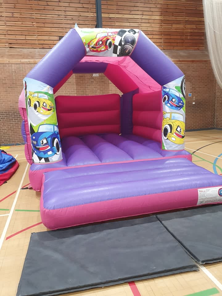 🏁 Our girl-themed car bouncy castle is suitable for children aged 1-11 years, ensuring that all the little ones can join in on the fun. With its vibrant pink and purple colours, it's sure to capture their attention and create a memorable experience.