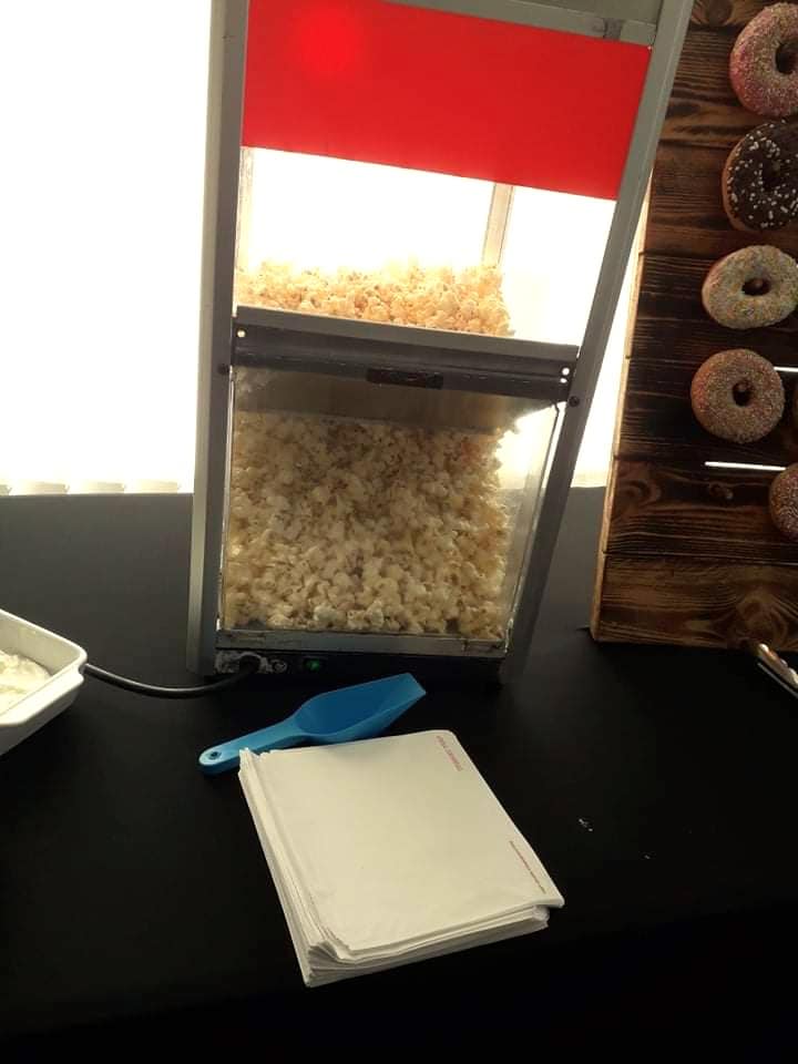 Looking for a fun and delicious addition to your next event? Look no further than our Popcorn Machine! Whether it's a birthday party, wedding, corporate event, or school function, our popcorn machine is sure to be a hit with guests of all ages. WHEN BOOKING PLEASE PUT WHICH FLAVOUR YOU WANT IN ADDITIONAL NOTES SECTION