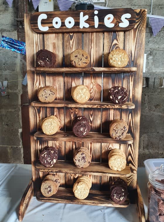 Indulge in the ultimate sweet treat experience with our Rustic Cookie Wall and an assortment of 50 freshly baked cookies. Perfect for weddings, parties, and public events!