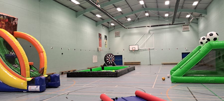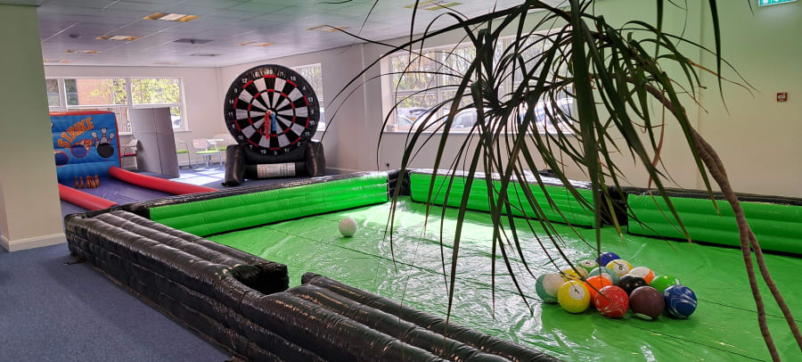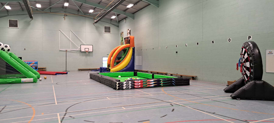Check out our full range of inflatable games today! Book a package containing the following favourites: inflatable dartboard, 10 pin bowling, Basketball shootout and football penalty,